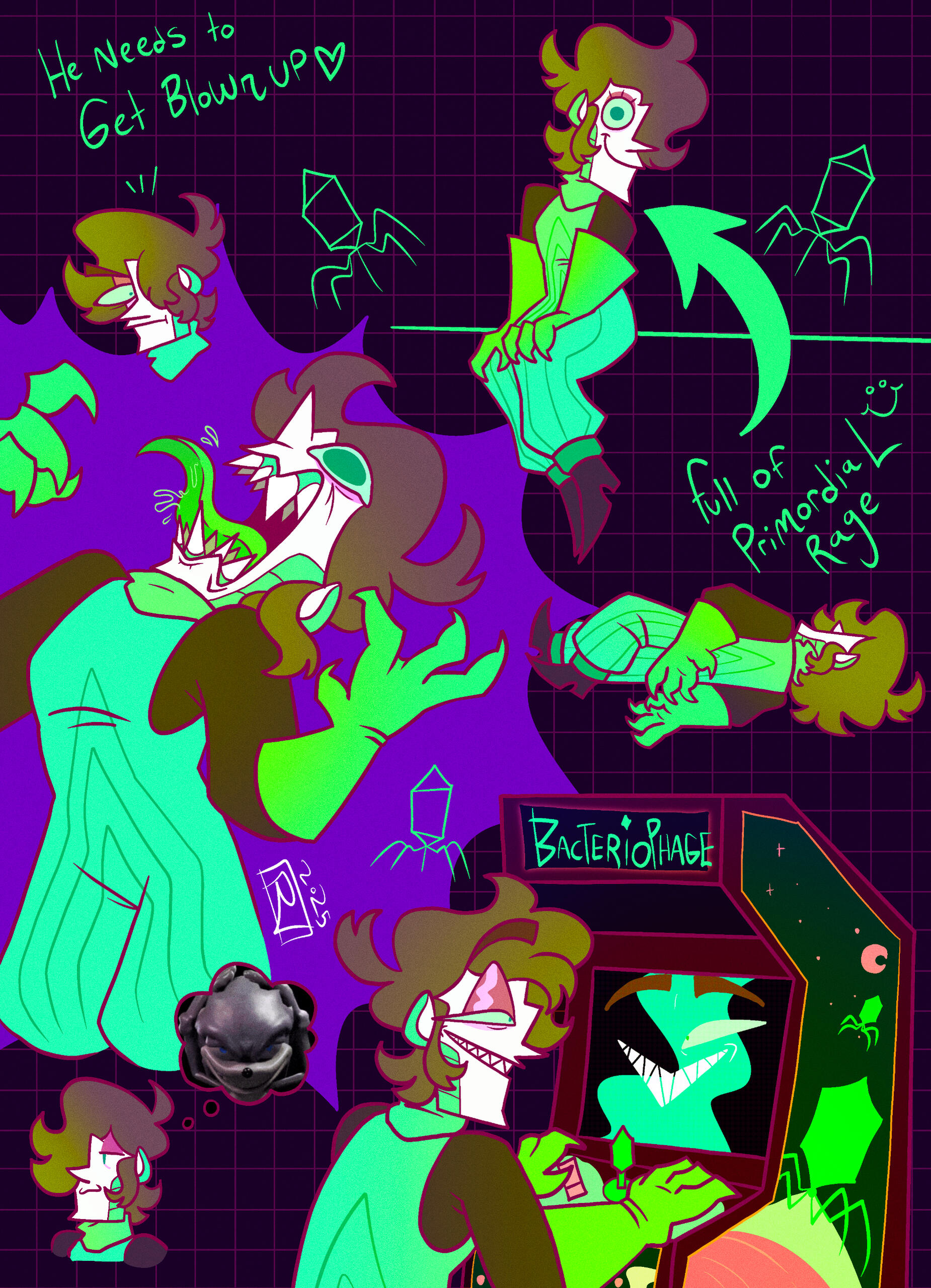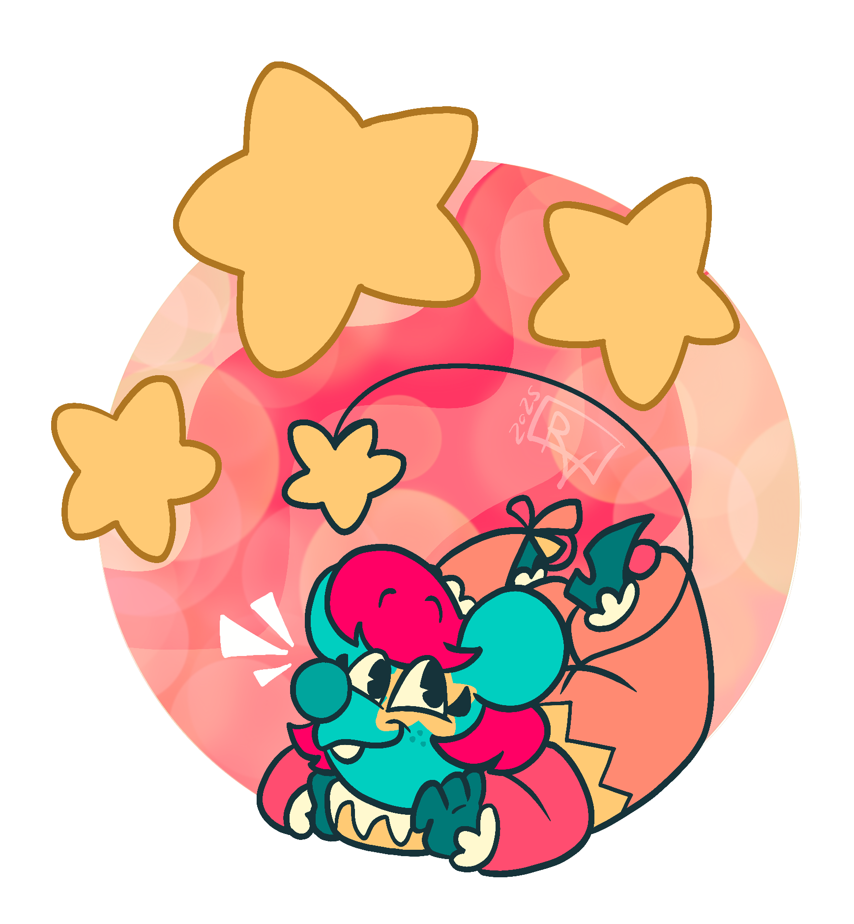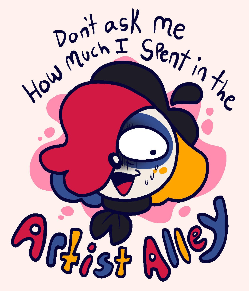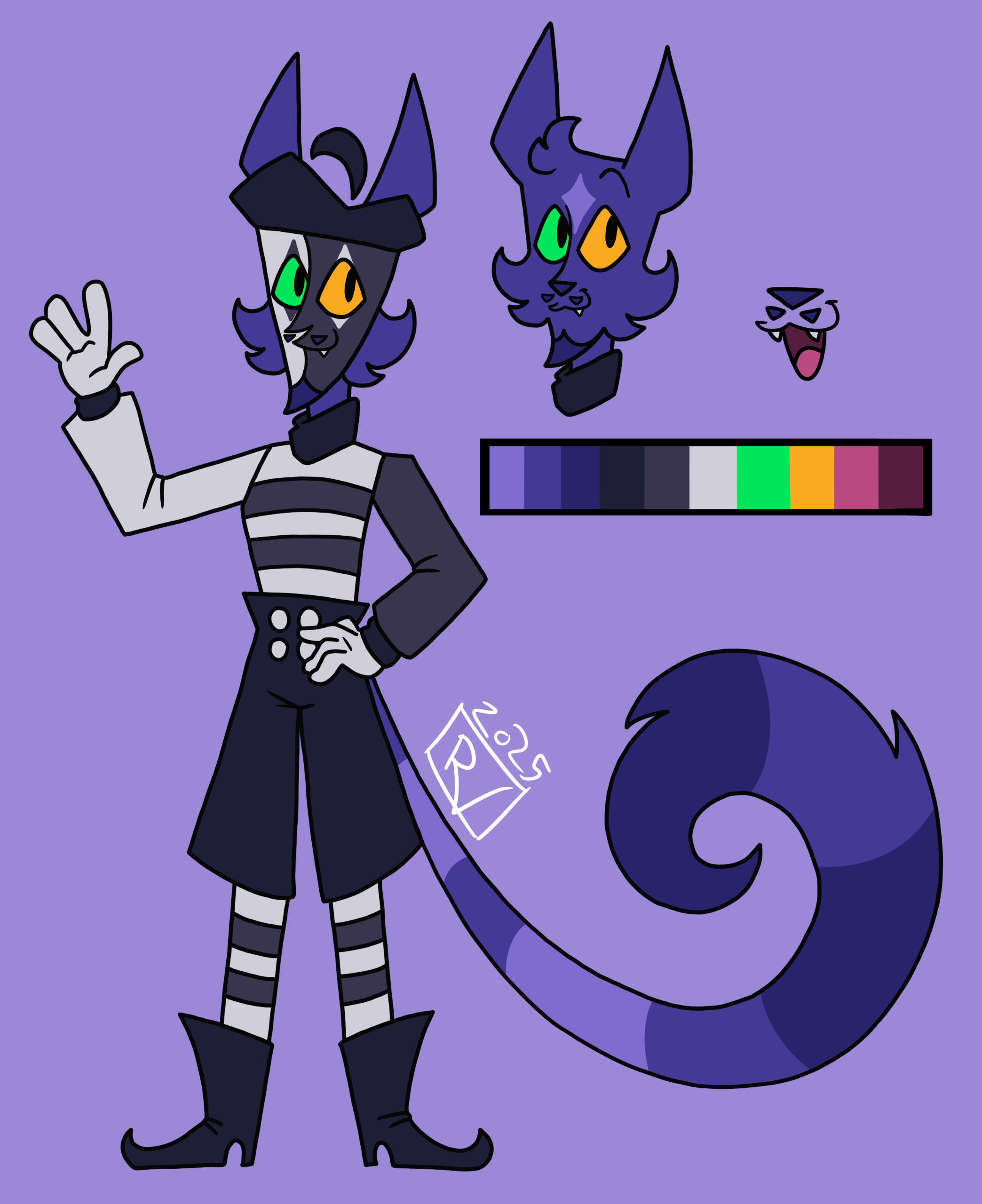 Splat has evolved from a simple character I made in 2024 to a secondary mascot due to her simple designs and how many of my friends enjoyed her greatly, so I decided to make a collection dedicated to her! These designs will all be adapted into stickers, keychains, and more!