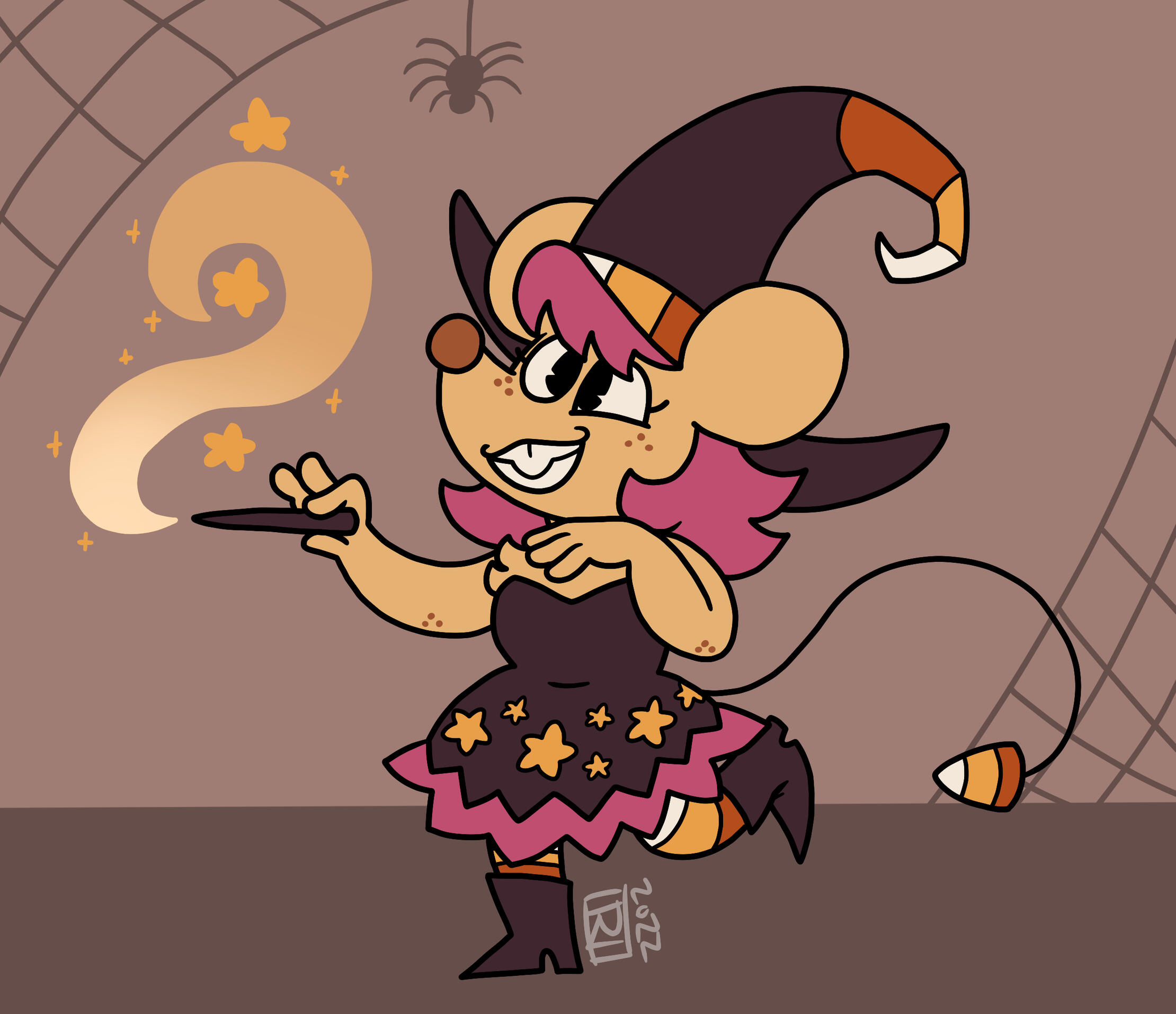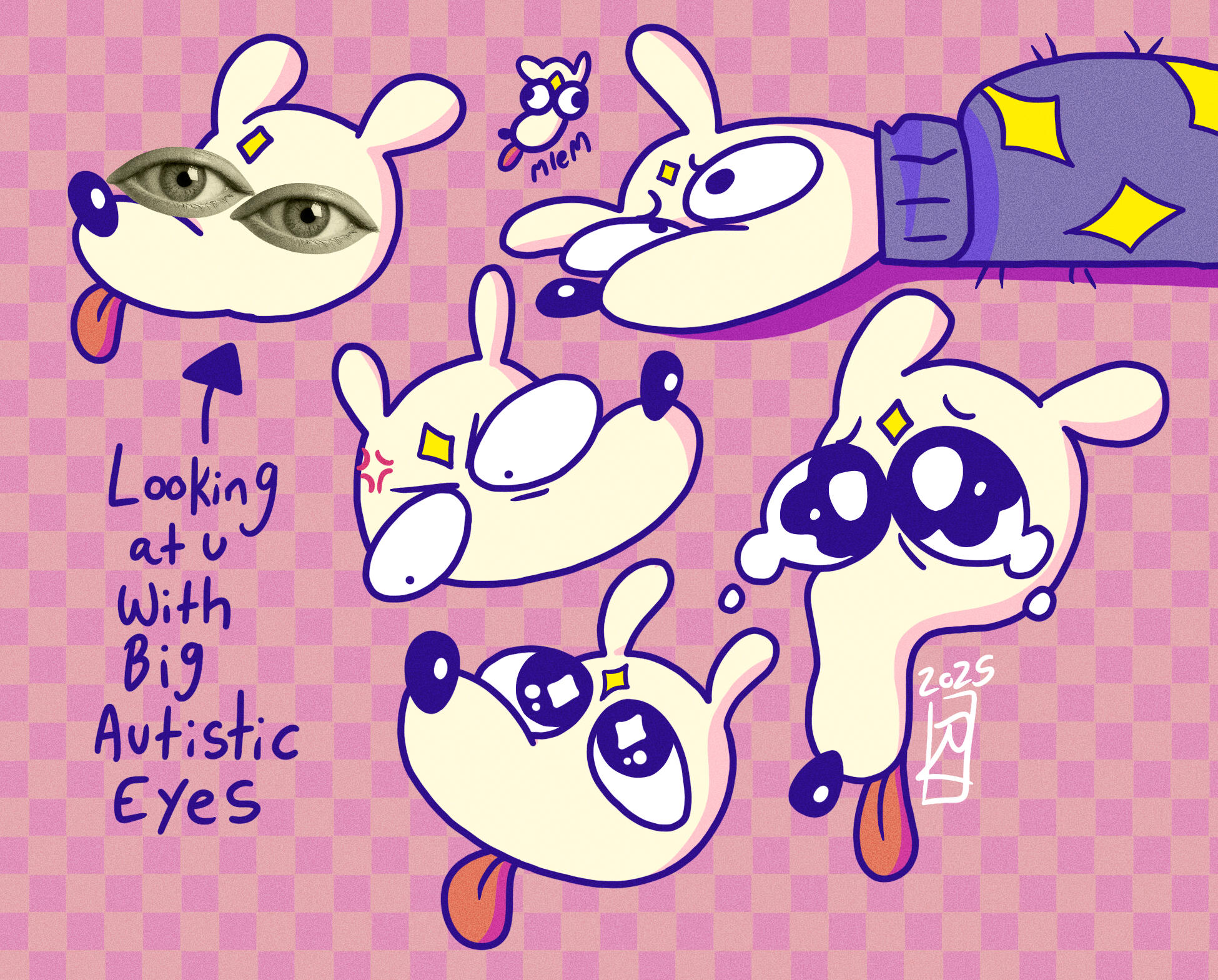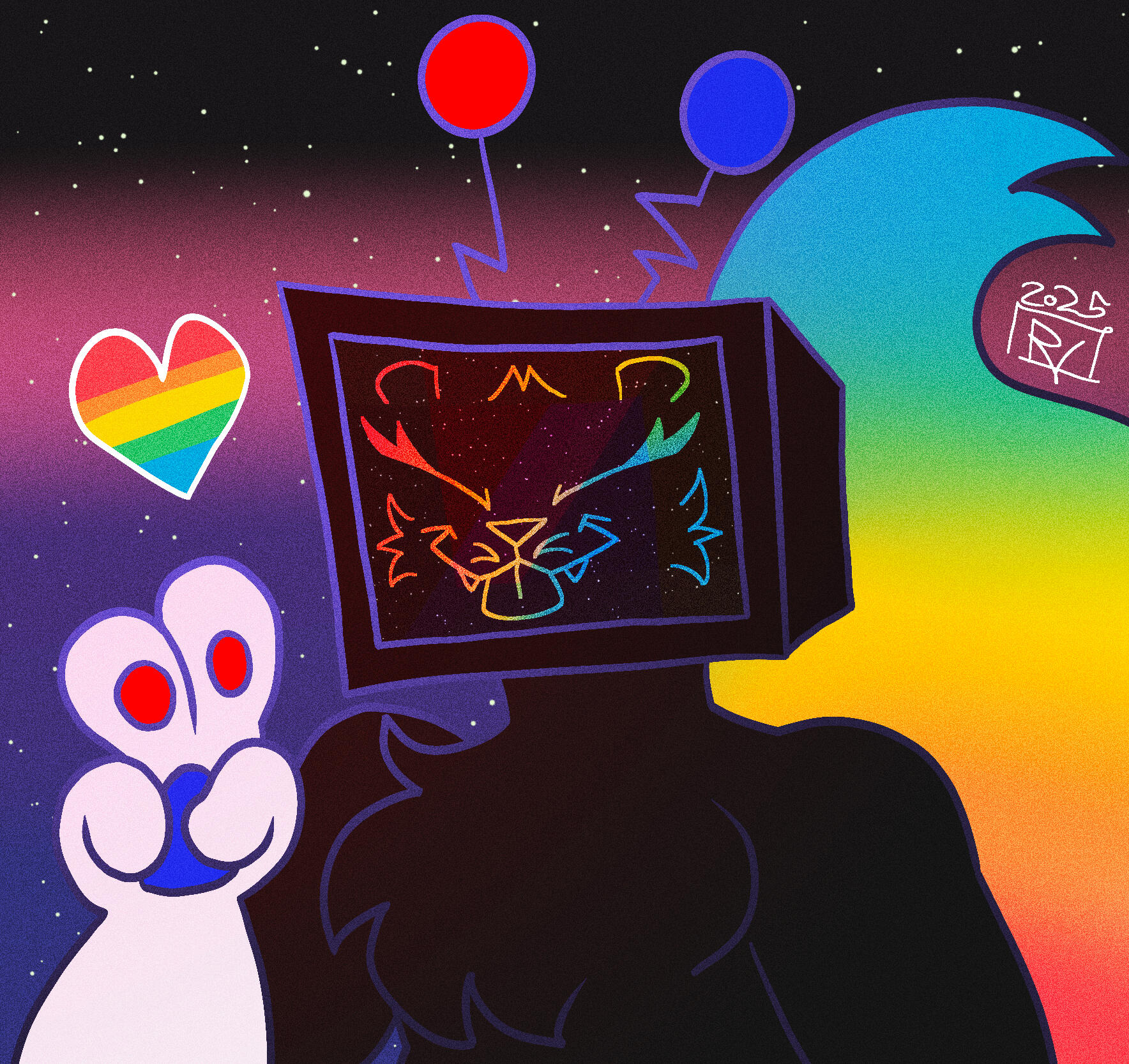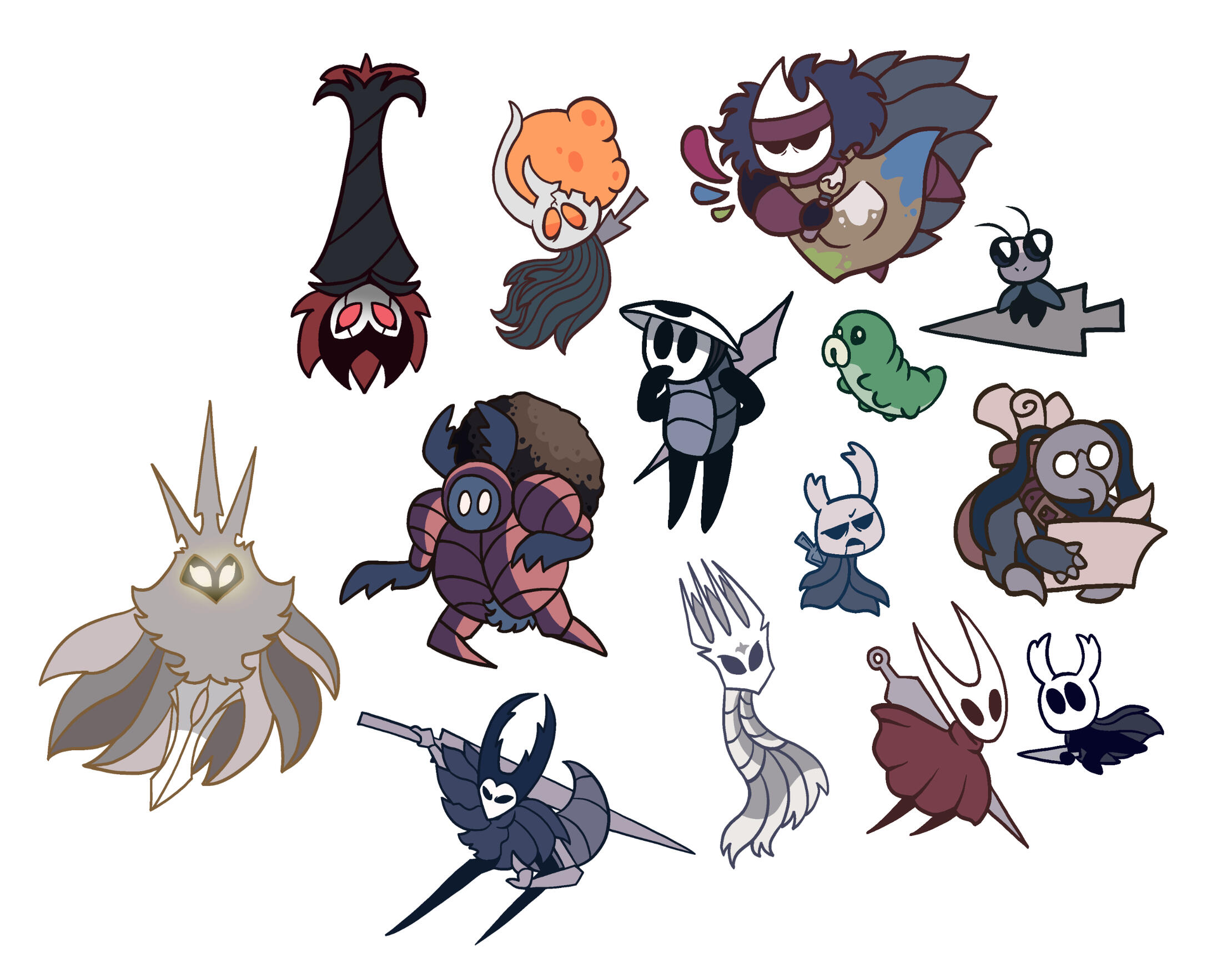 Splat has evolved from a simple character I made in 2024 to a secondary mascot due to her simple designs and how many of my friends enjoyed her greatly, so I decided to make a collection dedicated to her! These designs will all be adapted into stickers, keychains, and more!