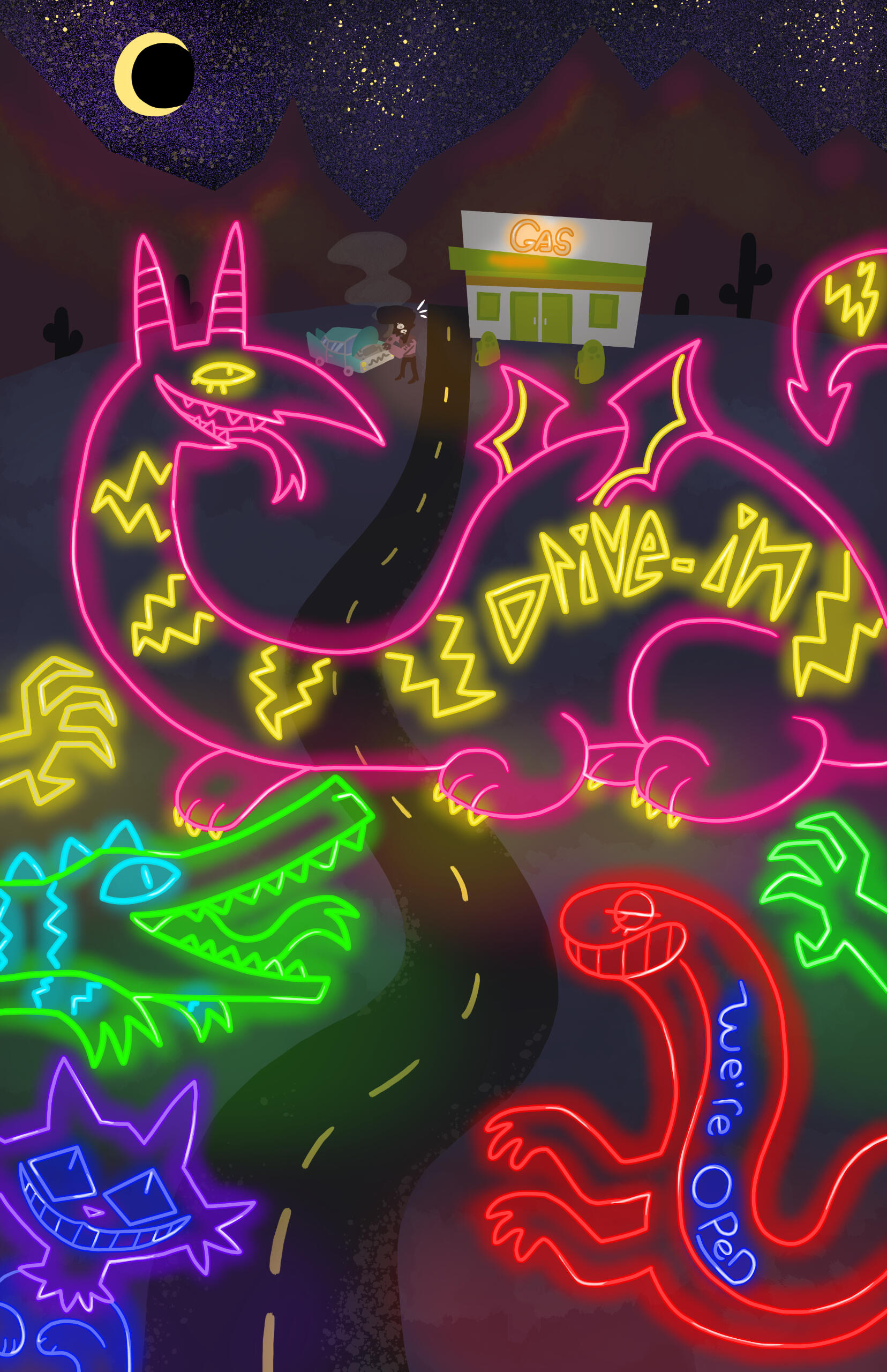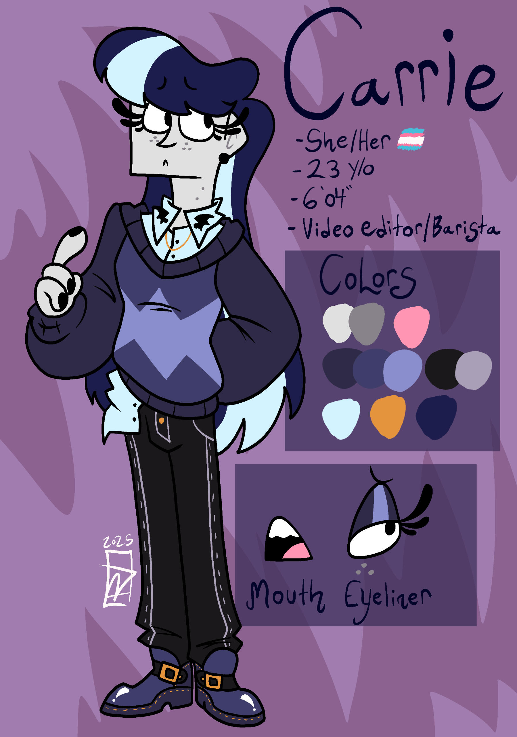 She graduated from The College for Creative Studies in the Spring of 2023, with a major in Animation and a minor in Creative Writing. Her senior project (Now her main passion project), Carnimals, which follows the escapades of a trio of clown animals, she hopes to pitch as a show to major networks in the industry. She prides herself on what her friends call ’The speed of a thousand artists’ when it comes to her art output speed.
